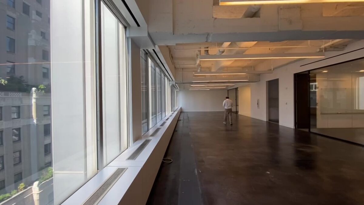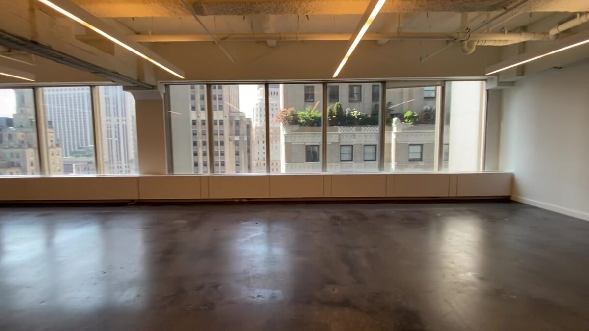This available high-end office space for lease is on the 30th floor and has excellent views. It's built with 3 offices/conference room and open area for 10-20 people. The ceilings are exposed and the floors are stained concrete.