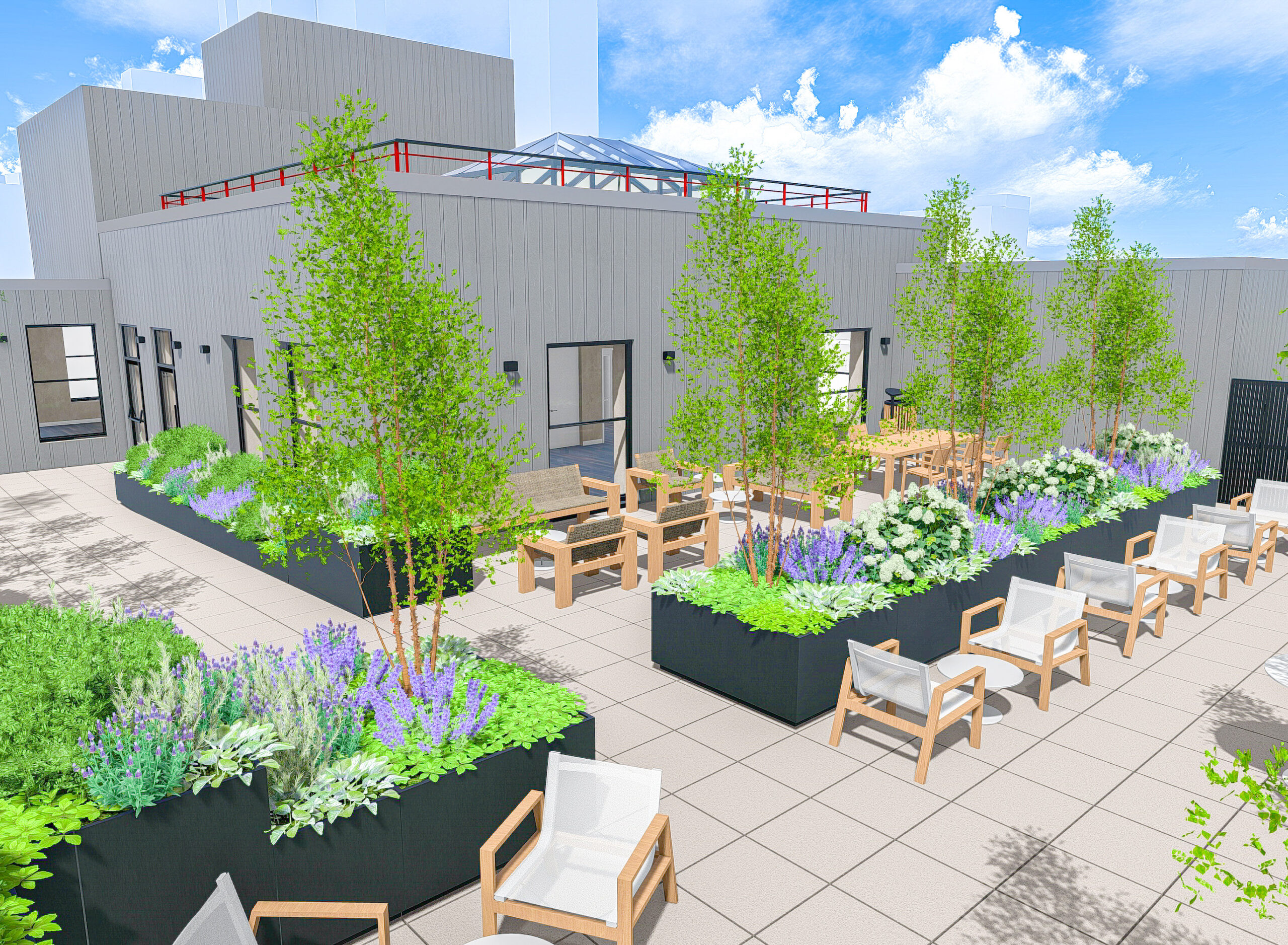 Tenants have access to a penthouse amenity floor with a lounge, conference space, and a furnished, landscaped terrace — ideal for client meetings or team gatherings. Core & shell plans are available for custom build-outs.