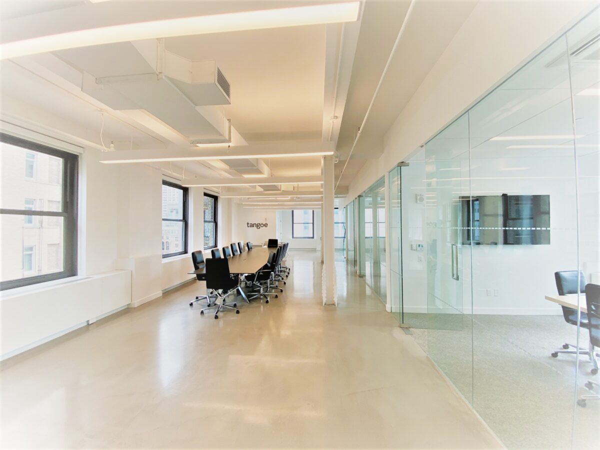 This beautiful office space for rent is both creative and high-end. It's beamed high ceilings, exposed columns and finished concrete floors deliver an industrial vibe. It's high-end finishes, including its full glass front offices