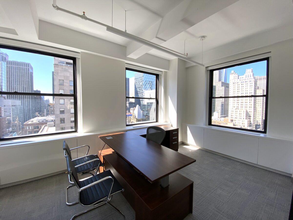 This brand new furnished office space for lease is right on Fifth Avenue. This office space has windows on 4 sides, is a full floor (meaning its not shared) and has great light and very good views.