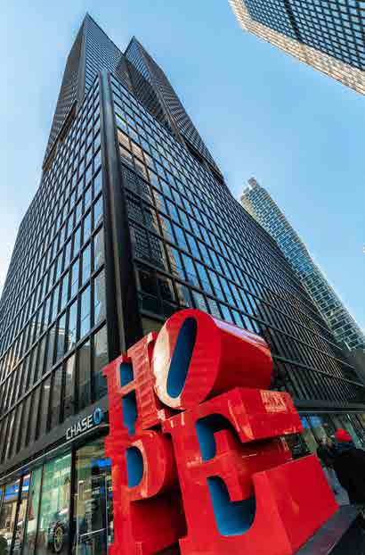The property is known for its strong building infrastructure and tenant amenities. On-site features include a full conference center, destination-dispatch elevators, 24/7 security, and an on-site parking garage. The lobby experience is polished and welcoming, complemented by curated public art and a professional arrival experience.