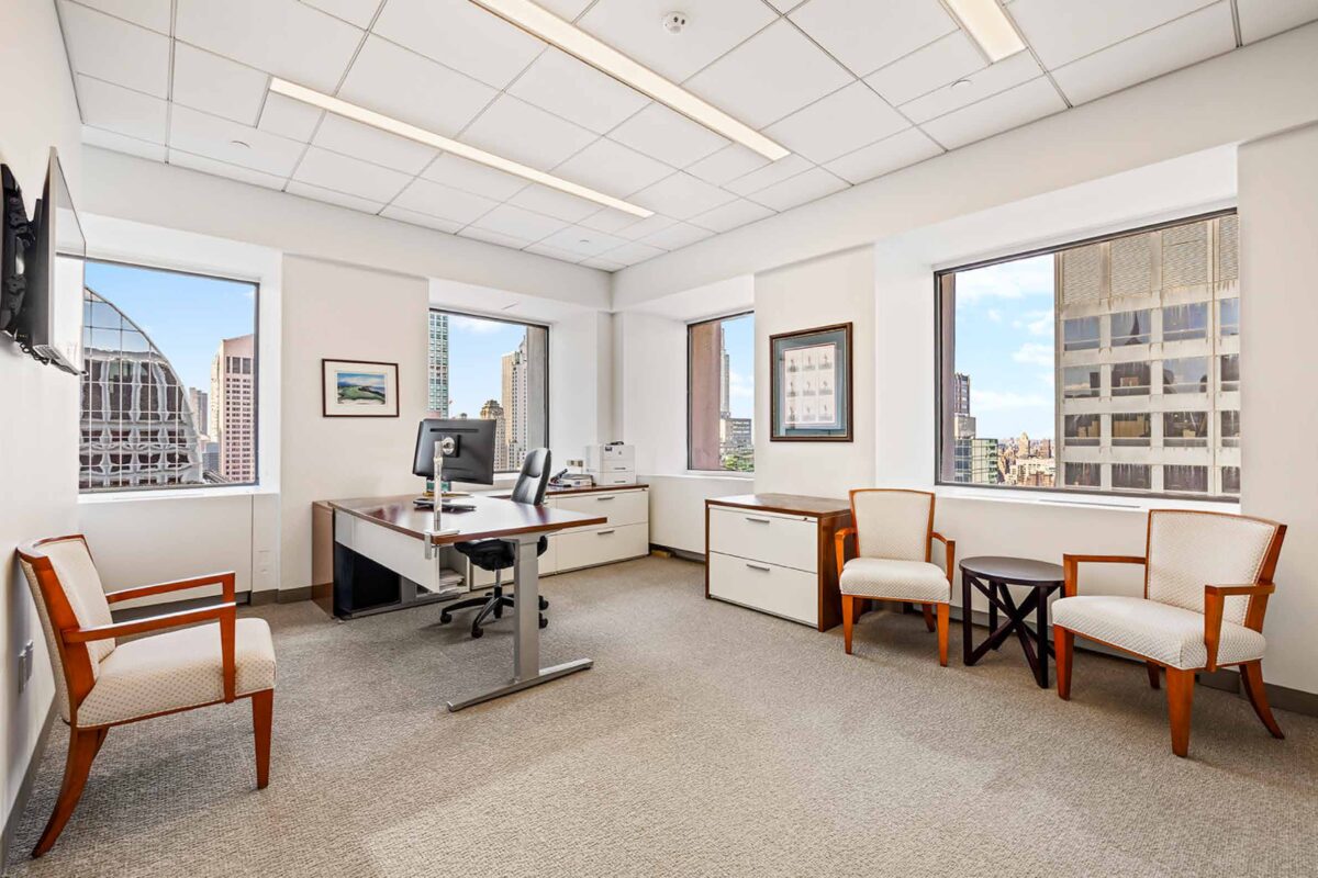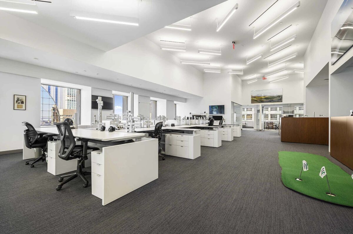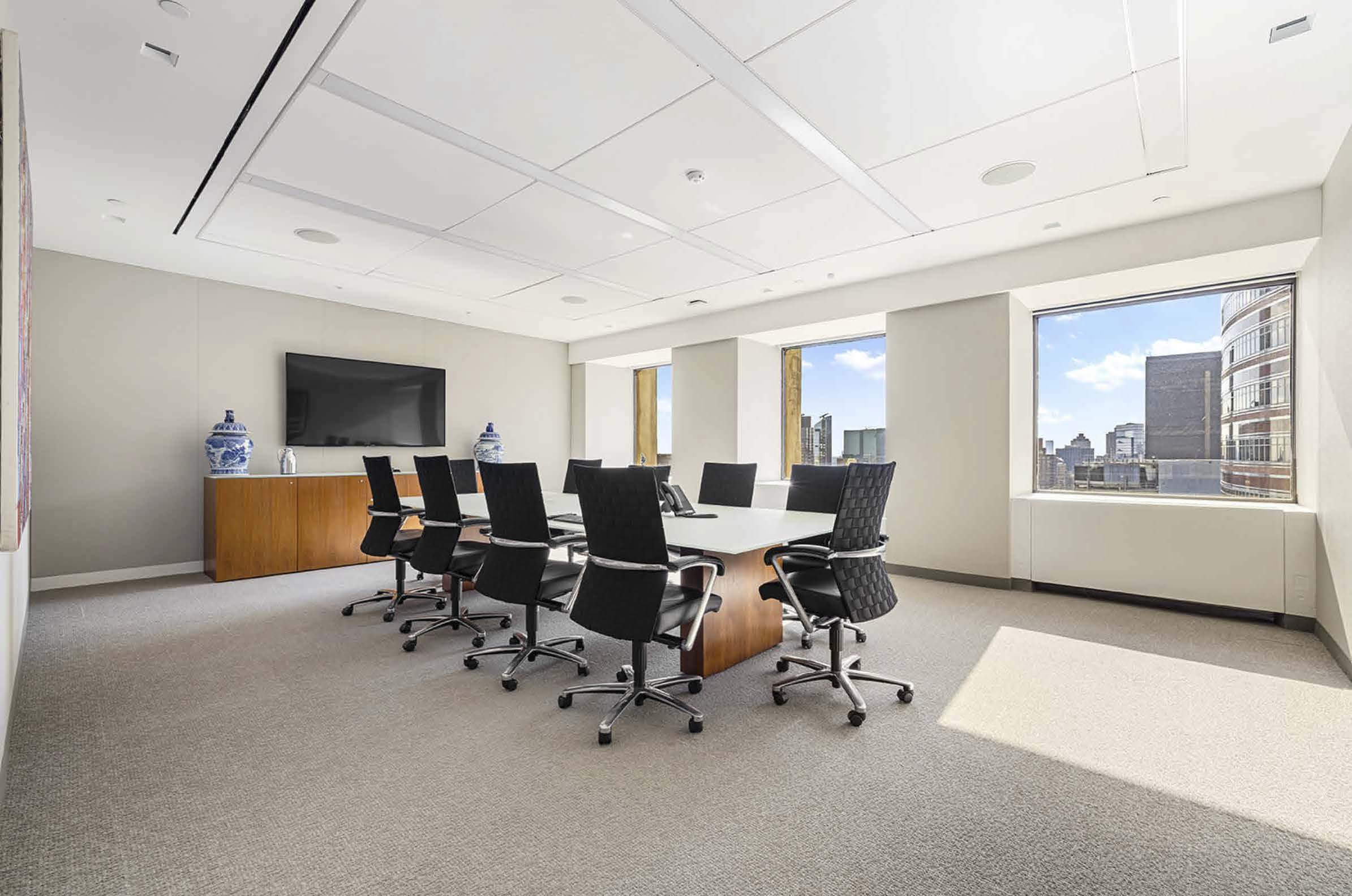 This top-of-house office space at 909 Third Avenue offers a fully furnished, move-in-ready environment with open views and abundant natural light. The space features high ceilings, a modern layout, and glass-fronted offices and meeting rooms that balance openness with privacy. Itโs designed to support focused work and collaboration from day one.