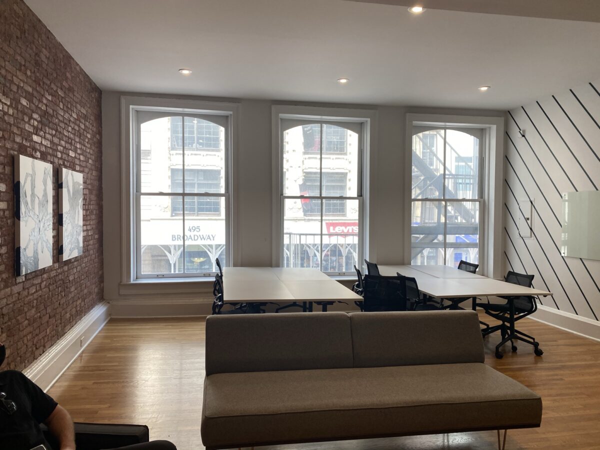 This beautiful office space for lease is a full floor completely furnished with 25 desks and several phone booths. This triple mint 2,500 rsf unit is flooded with light. The rent is extremely reasonable since their is no elevator but is likely not a big deal for young companies with employees that don't mind walking up a flight of stairs.